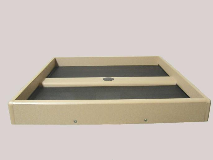 5/8" Poly-lumber made from recycled plastic and milk jugs, lifetime guarantee to never crack, split or fade, stainless steel screws. Mount on a pole under a large hopper feeder to feed and catch seeds and hulls. Mounting flange sold separately. Also can be used as a ground feeder by adding legs