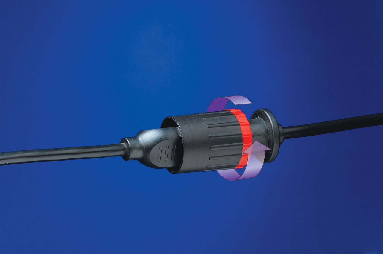 16 gauge, 13 Amp Rating, 25 feet. Secure water-resistant electrical connection. The revolutionary LOCKNDRY outdoor/indoor detachable power supply cord provides a weather-resistant seal while keeping the connection firmly secured. The specially designed plug on the LOCKNDRY cord fits any standard outlet, but when mated with a LOCKNDRY compatible power cord, the large black nut pulls the plug tight against the gasket to form a water-resistant seal. The red nut then locks everything in place and prevents cord separation. The LOCKNDRY is great as an all-purpose extension cord, too.