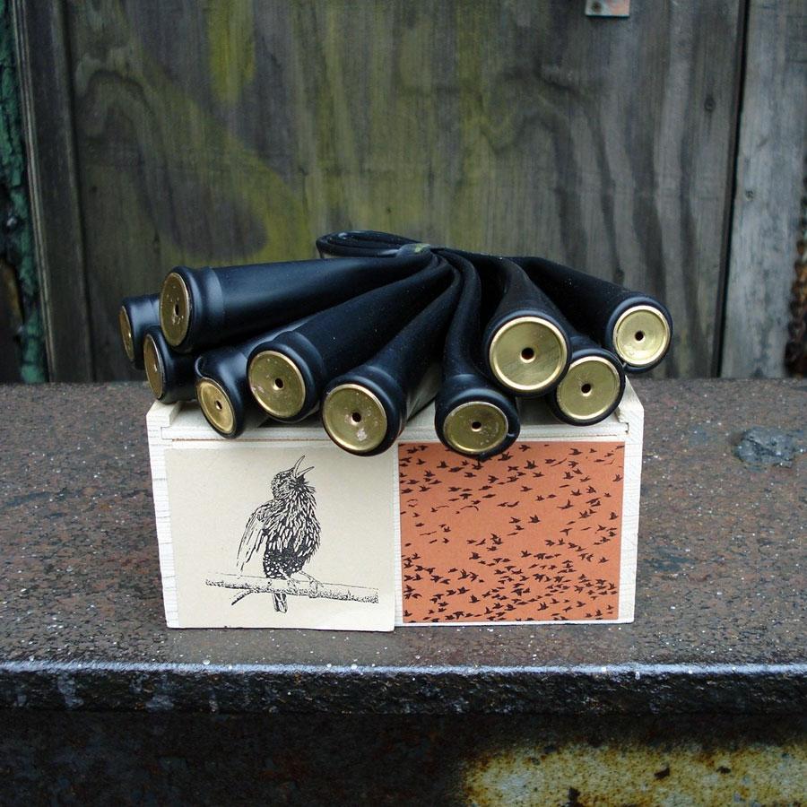 Each of these extremely accurate bird calls takes years to develop and are the creation of Monsieur Morel who has been making calls since he was a child in the mountains of southern France. Your call will allow you to learn to recognize birds by their song, to communicate with them, to discover, observe and love them - this, according to M. Morel, is "without doubt a first step in understanding the secret of happiness." Slowly and conscientiously created from lasting materials such as boxwood, maple, beech, leather and brass, these are wonderful gifts to share between generations. Please use these calls as intended - please do not purchase for hunting and take care to avoid using calls during times of nesting.