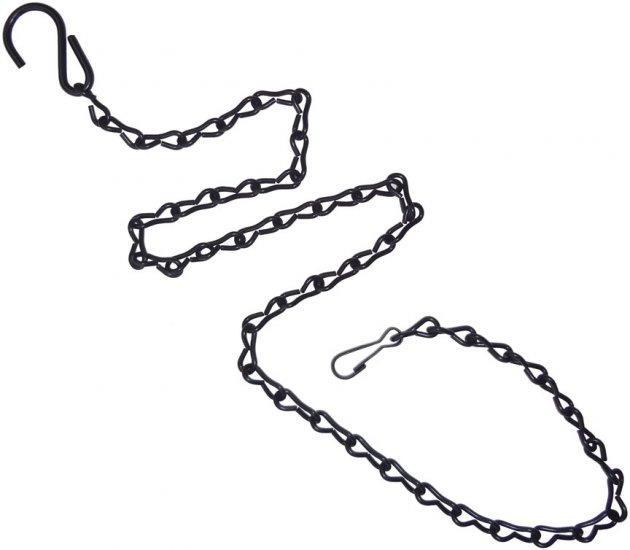 33" long chain supports 15 pounds. Allows for adjustment of length. Simply snap the end clip to any location along the length of the chain to create precisely the length necessary for your application. The chain is zinc plated before it's powdercoated with an automotive grade black finish. This is the best hanging chain on the market - and it's all made in America!