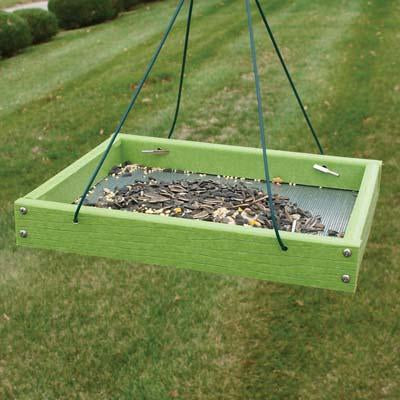 Recycled Platform Bird Feeder. Whether you are a beginning hobbyist or an experienced birder, enjoy watching all kinds of birds enjoy this beautiful bird feeder. Offer an environmentally friendly feeding station in your yard. This feeder offers a delightful combination of rustic beauty and practical use that will surely add to any bird sanctuary. Made out of recycled plastic.