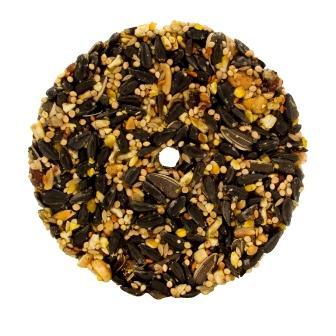 Muskoka Mill Wheel. 175 grams. Approximately size is 4½" diameter x 1½". Every wheel has a hole in the middle for hanging or fitting feeders. Wheels fit in all standard suet baskets.Made In Canada.