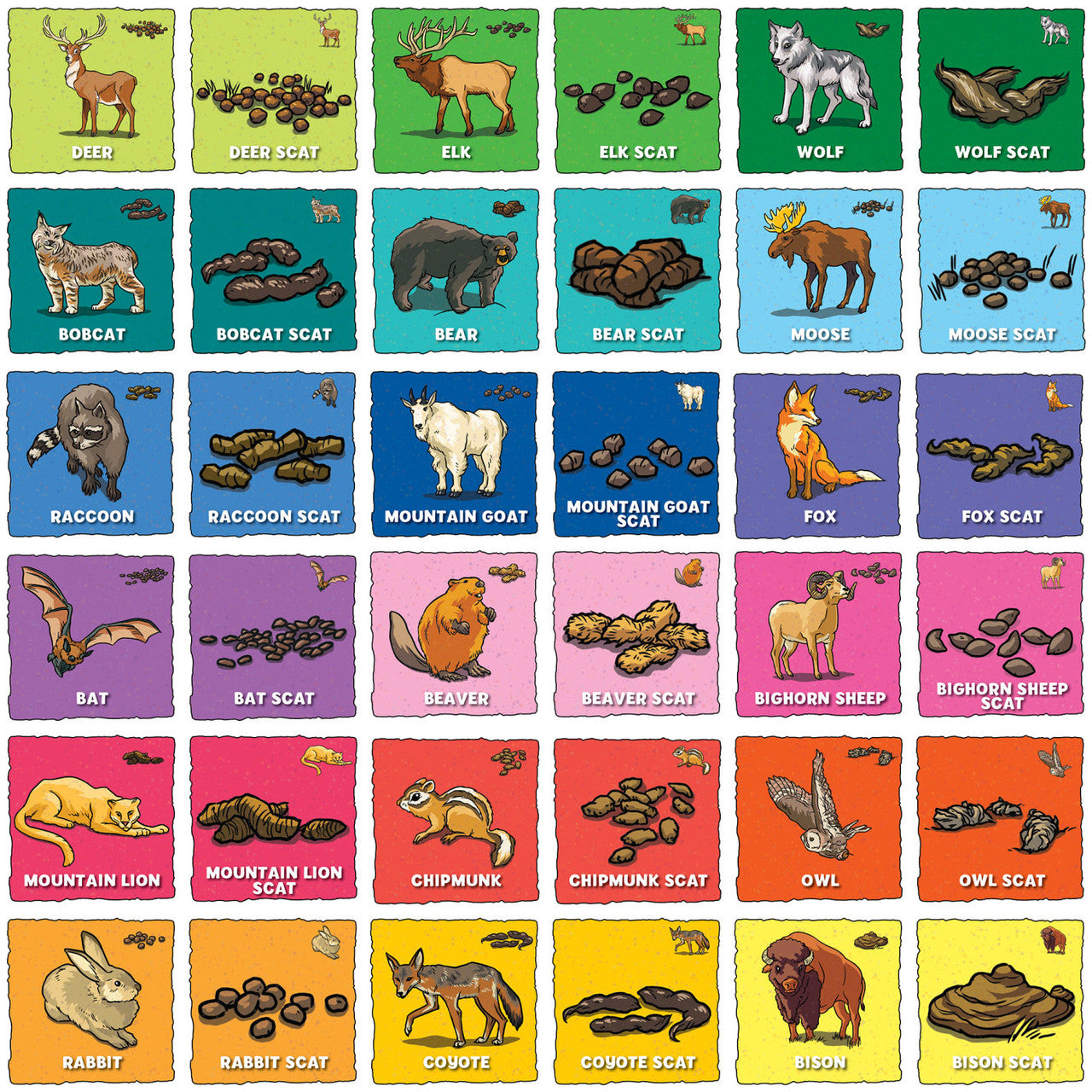 Calling all explorers! Enjoy family game night with I Can Explore Animal Poop™ Matching Game by MasterPieces. This game includes 18 animals and their poop. Challenge your memory and have fun trying to match up the animal to their droppings. Collect the most matches by the end of the game, and you win! For 1+ players, ages 3+.