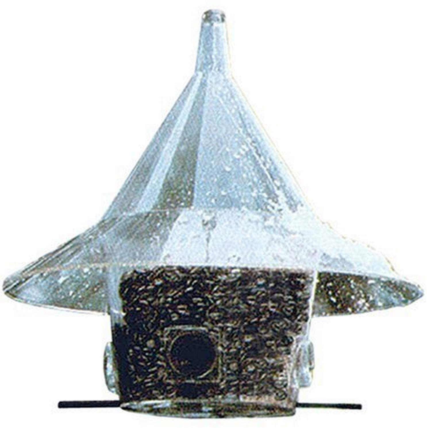 The Arundale Mandarin Sky Cafe Squirrel Proof Bird Feeder features a generous 17" squirrel proofing dome that adds to the feeder's attractive appearance while protecting the seed from both squirrels and weather. When hung properly, squirrels will be unable to reach your seed past this massive dome. The large feeder reservoir features a six quart capacity and four feeding ports with individual perches. The feeder reservoir and dome are clear for high bird visibility and clear view of seed levels. Simply lift the feeder dome for quick and easy cleaning and filling.