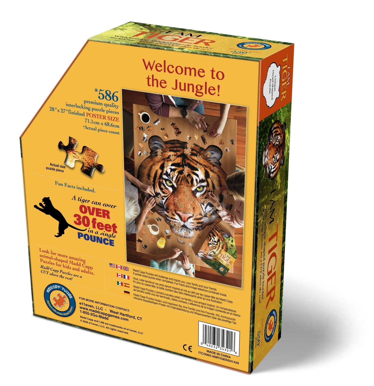 Each puzzle comes with an educational Fun Facts insert. On one side is a fold-out puzzle image to hang as a poster or use as a reference. On the flipside is a wealth of amazing facts. Did you know, for instance, that the back of a tiger’s ears usually have white spots that resemble eyes and can fool prey into thinking they are being watched?