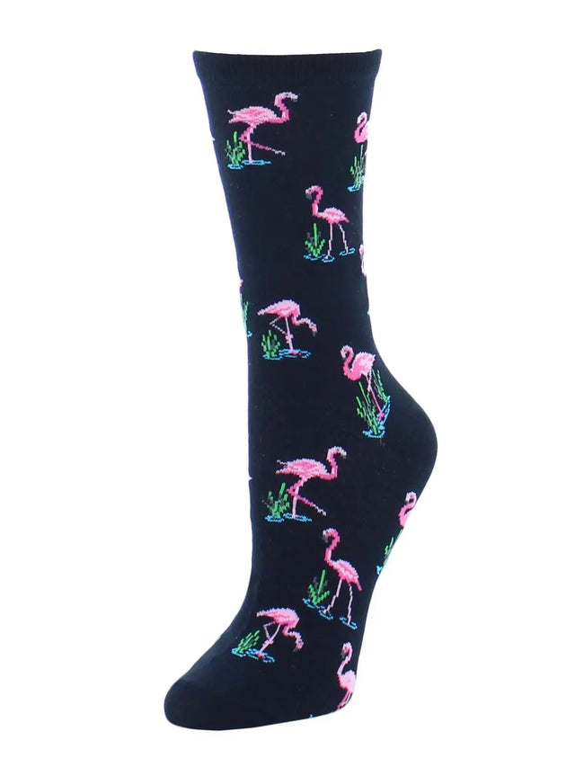 Memoi Feathered Frenzy Flamingo Bamboo Crew Novelty Socks
