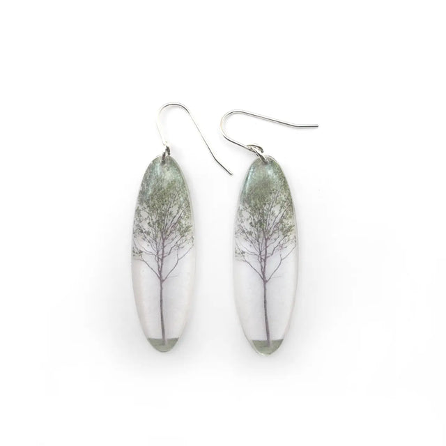 Tall Oval Green Tree Earrings