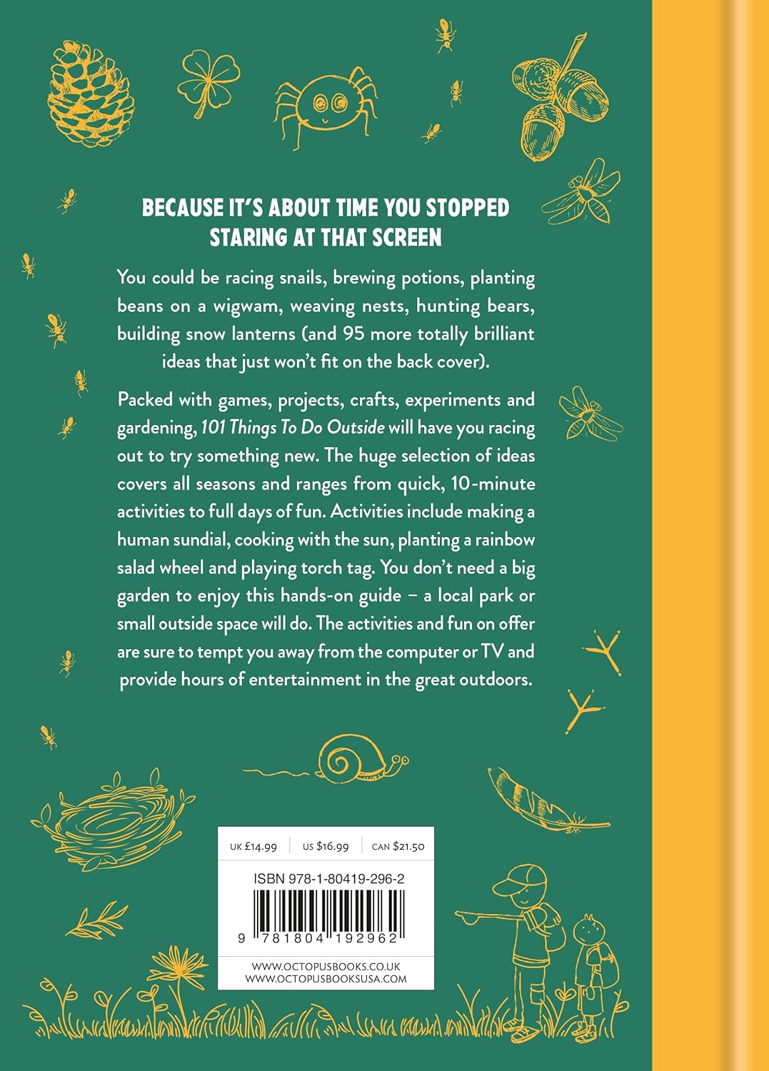 This hands-on guide will help your child get the most from being outdoors, and you don't need a big garden - a local park or small area will suffice. All 101 ideas are sure to get the kids away from the computer and provide hours of entertainment for the entire family.