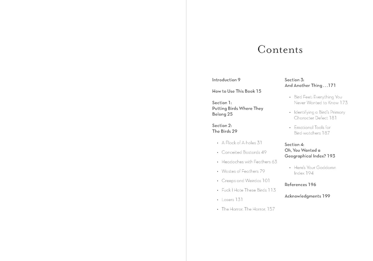 Professional birding amateur and national bestselling author Matt Kracht has had it with these goddamn birds. His new book is a warning, a field guide to help you identify and stay away from the absolute worst birds ever to plague planet Earth. Featuring an all-new scientific scale devised by the author that proves how awful birds really are.