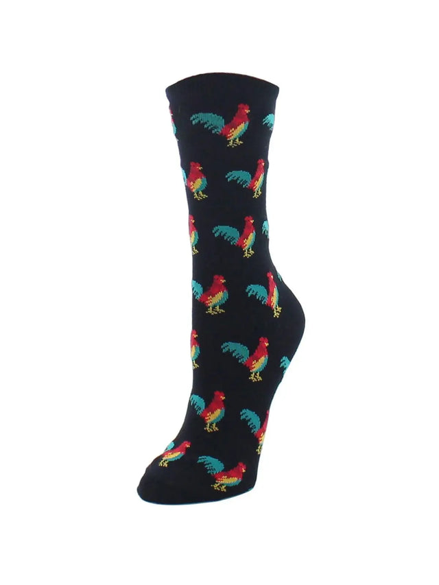 These socks won't tell you the Sun is up, but you'll love to put them on in the morning. Our Rooster Bamboo Crew Socks are comfy and conversational, featuring an allover embroidery of colorful roosters to add some fun to any outfit.