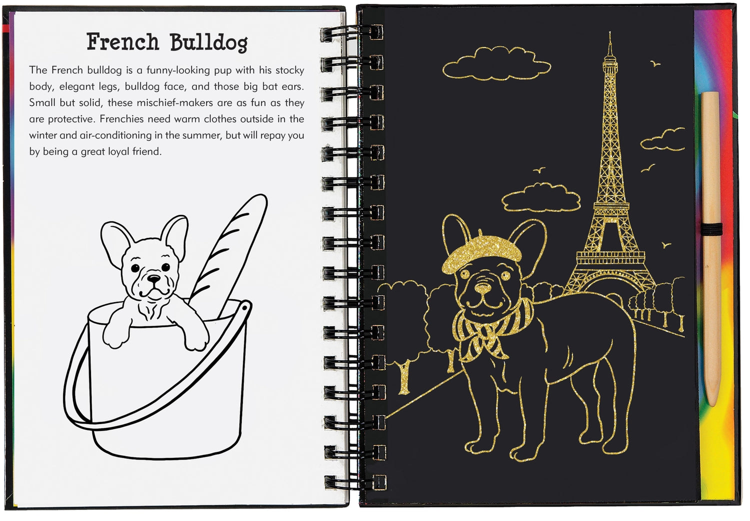 Book contains 20 black-coated scratch-off pages, 20 illustrated pages with informative text, and 20 extra pages for independent drawing and sketching.