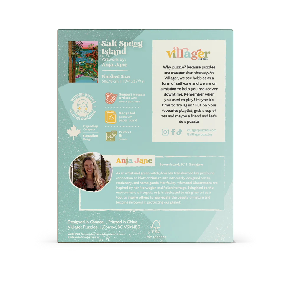 A beautiful island off the west coast of Canada, Salt Spring Island is known for its gorgeous ocean views, arbutus trees, farmers' market, and the occasional skinny dipper. Illustrated by female artist, Anja Jane from Bowen Island, BC.