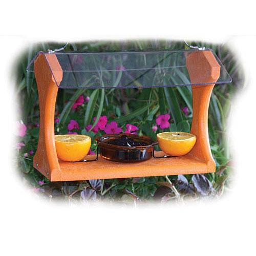 Features a plexiglass roof for weather protection and recycled plastic frame. Includes a jelly dish and two fruit spikes.