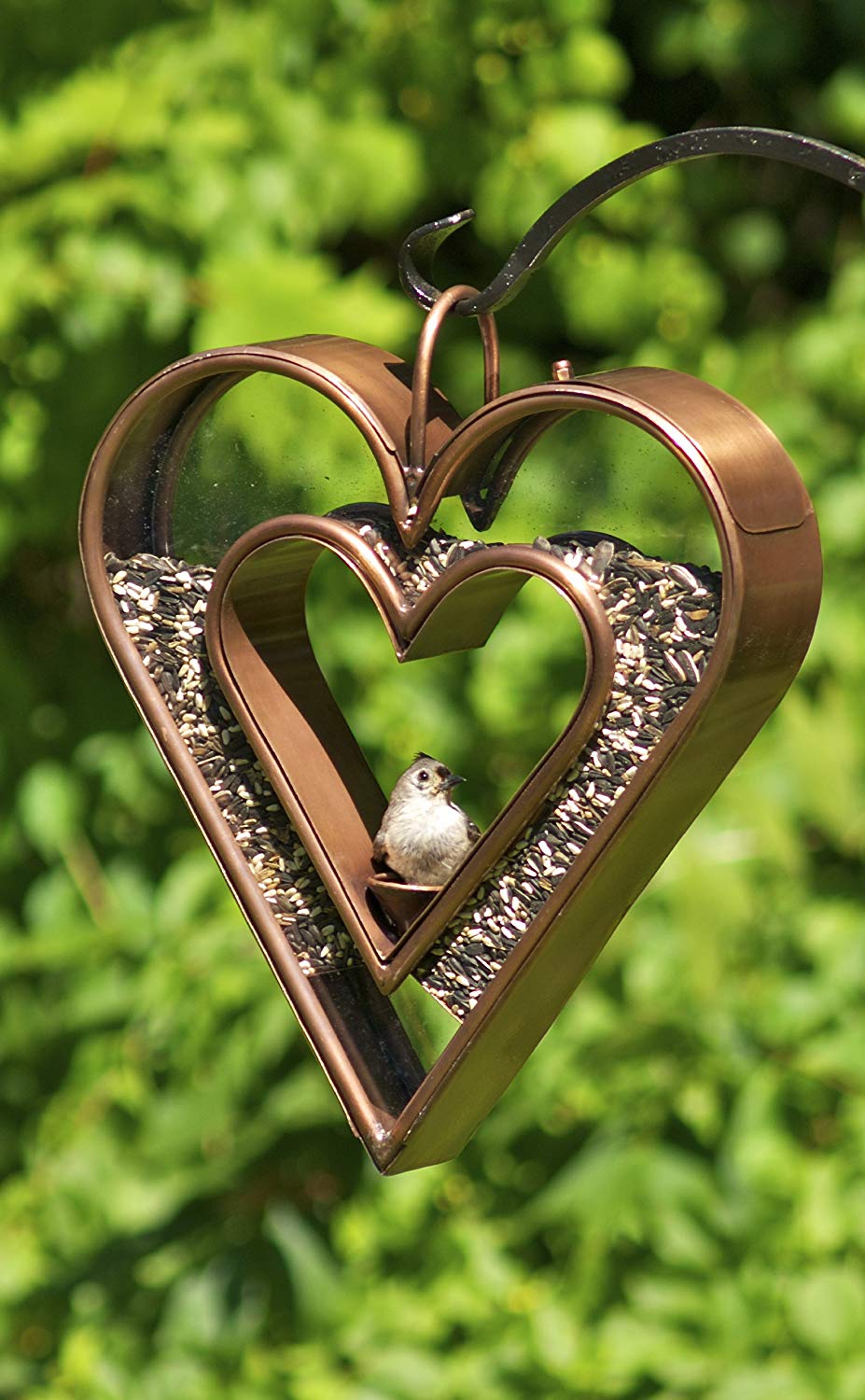 Heart Fly-Thru Bird Feeder Birdfeeder, Copper Finish
