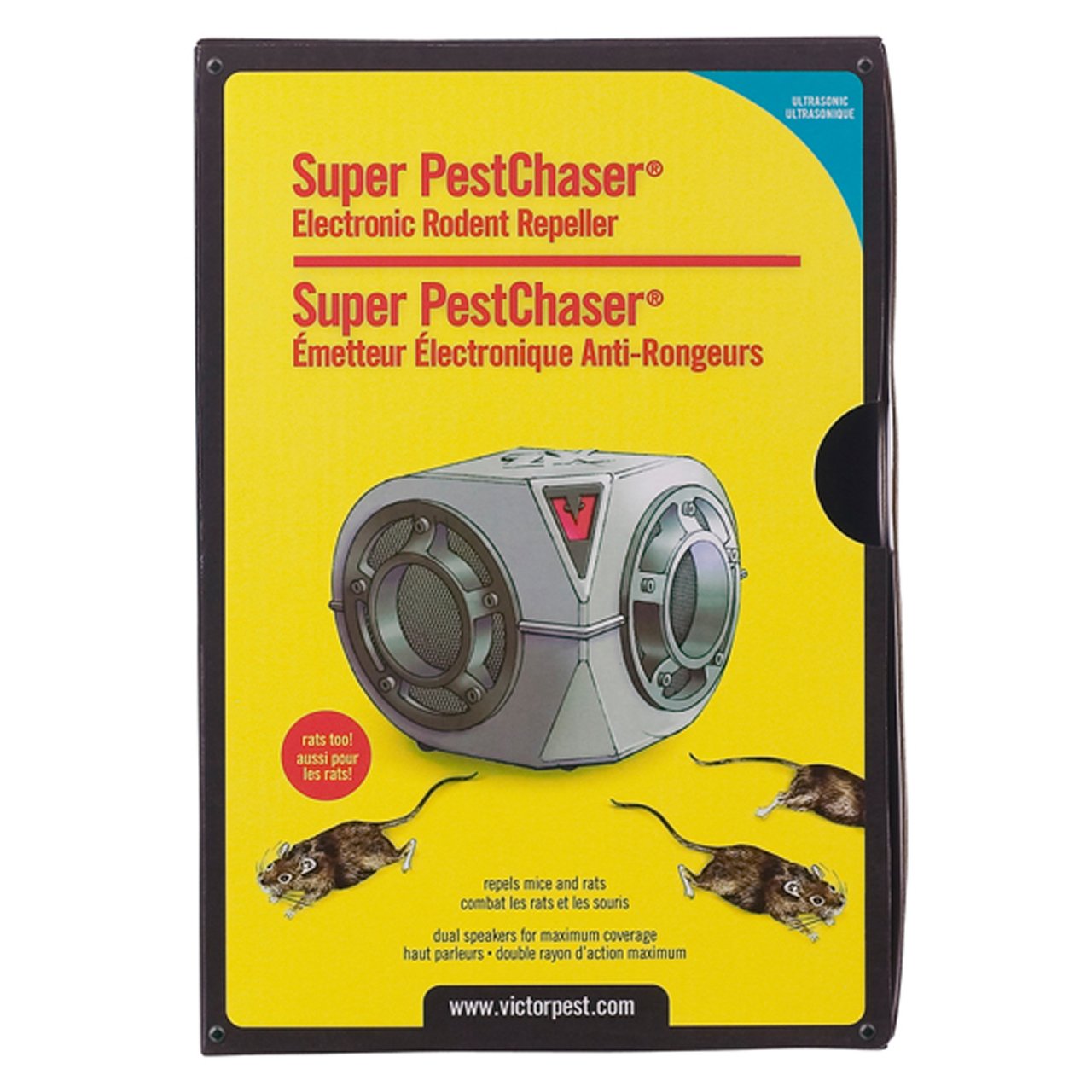 The Victor Heavy-Duty Sonic Pest Chaser Rodent Repellent emits high frequency sound waves that effectively repel rodents from protected areas. With more than 2 times the power output of standard ultrasonic pest control units, this PestChaser is ideal for use in larger rooms, such as kitchens, garages, attics and basements. A 6 ft. cord enables ideal placement. The sound is completely inaudible to people and non-rodent pets. Varying intensity and frequencies of ultrasonic sound waves prevents rodents from getting used to the Victor Sonic PestChaser. Since the sound is inaudible, a red LED light tells you the unit is working properly. It's kinder than traps, safer than poisons when used as directed, and there are no dead rodents to dispose of, so it minimizes human contact with mice, rats, and other disease-bearing rodents. Reduction in rodent activity should occur within 6-10 days. Estimated service life of the unit is 5-7 years or more. Note: Ultrasonic sound cannot penetrate furniture, cabinets or walls. Multiple units required for multiple rooms.