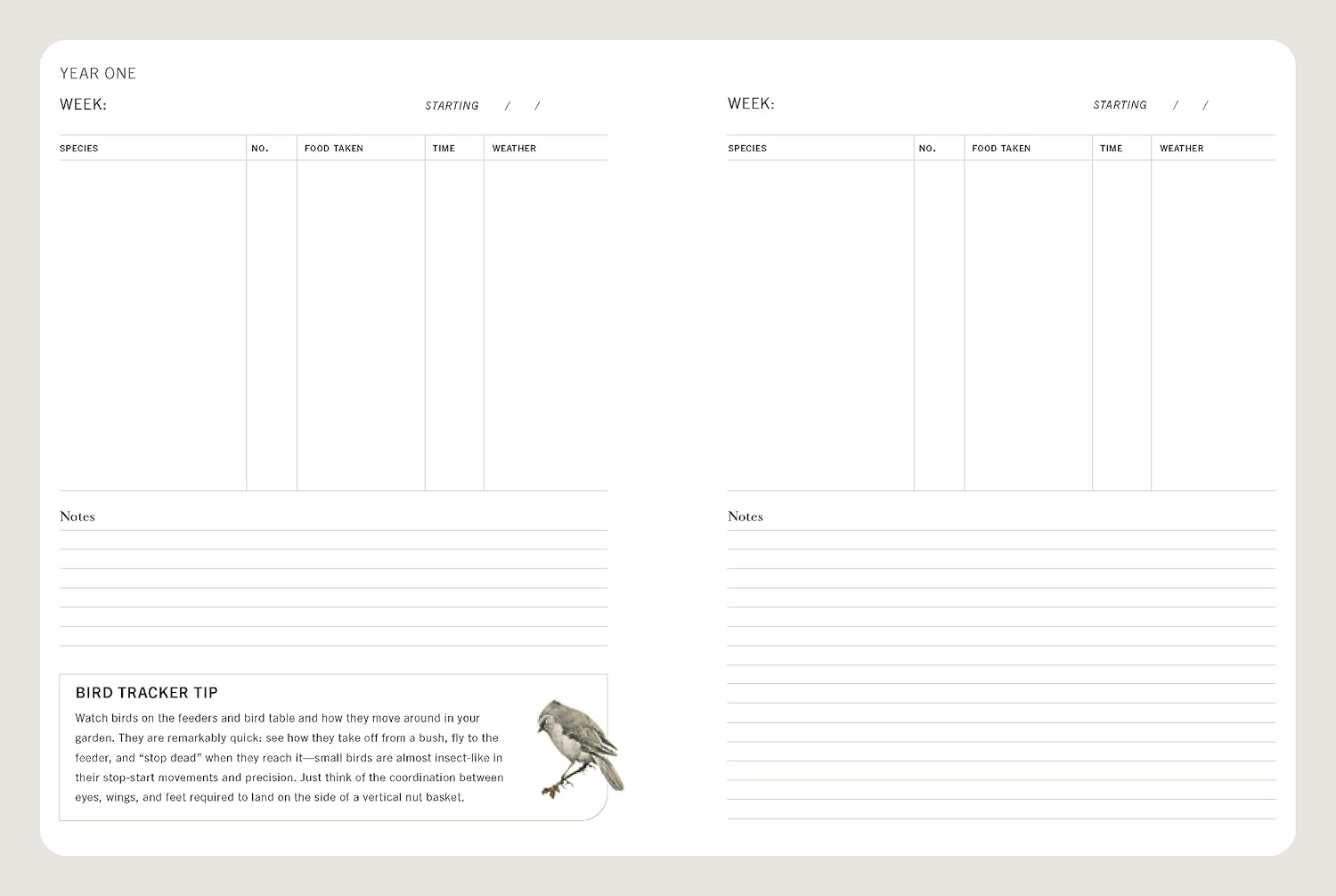 • A unique logbook, filled with tips to get the most out of bird-watching, so you can chart your own findings and observations over 2 years.