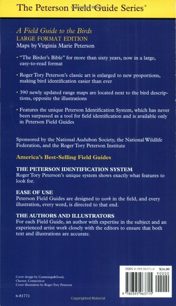 Explore the Expanding Peterson Line. Leave your reading glasses behind. Now Roger Tory Peterson's classic Field Guide to Eastern Birds has been reissued in a larger format specially produced for those who don't want to take their reading glasses into the field. Peterson's treasured illustrations have been reproduced in beautiful color. Species descriptions include only the most important identification elements - size, voice, and habitat - in large, easy-to-read type. Color range maps, conveniently located next to the species accounts, have been updated specifically for this book. Roger Tory Peterson's original text has been revised and updated by Virginia Peterson, who worked closely with her husband and created the maps for the fourth edition of the Field Guide to Eastern Birds; Noble Proctor, a professor of biology who was a close friend of Roger Tory Peterson's and led natural history tours for twenty-five years; and Pete Dunne, vice president of the New Jersey Audubon Society and director of the Cape May Bird Observatory, as well as the author of many books on birding. The maps have been updated by Virginia Peterson and Paul Lehman, past editor of Birding magazine and a bird tour leader who has traveled extensively around North America studying bird distribution and identification and has written many articles on these subjects.
