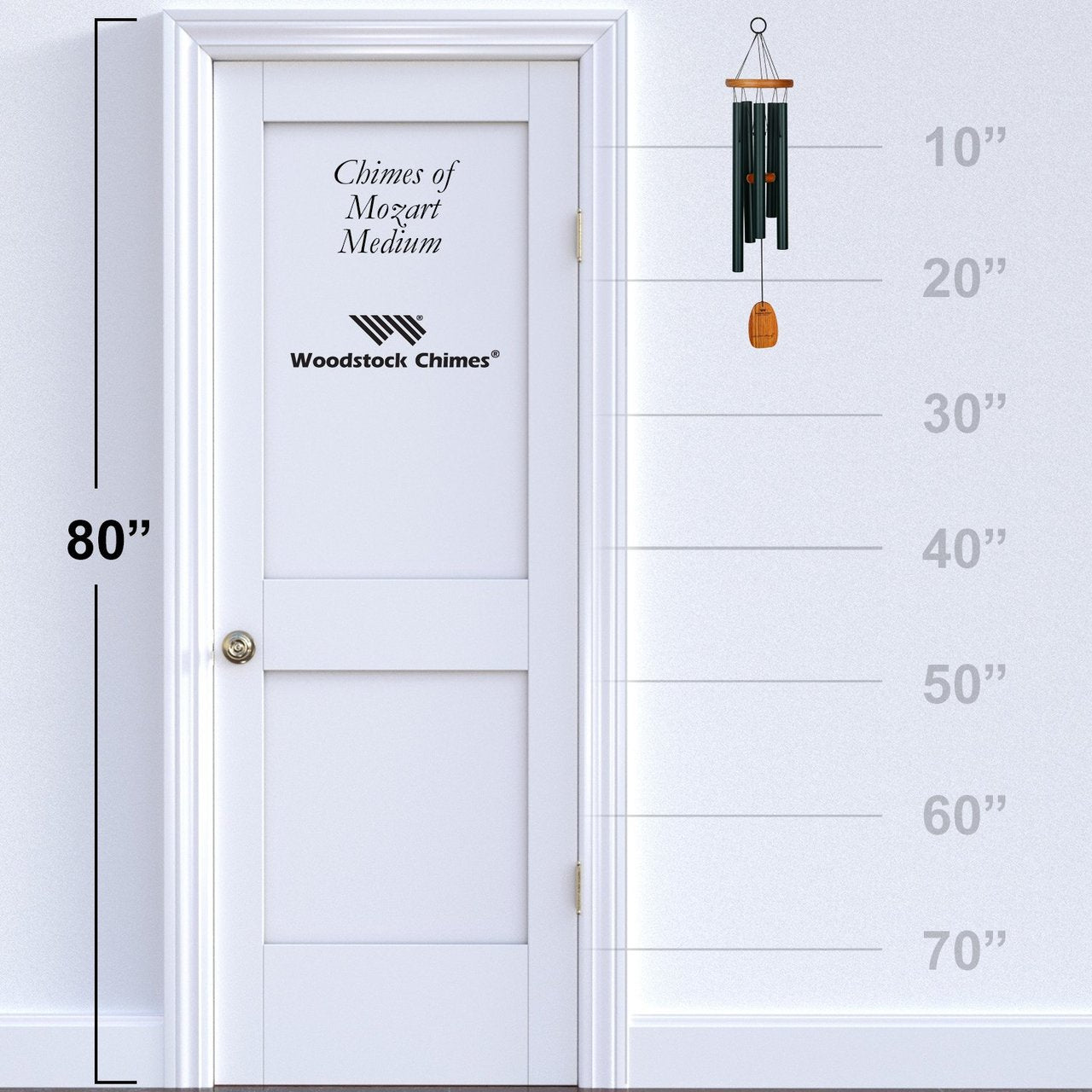 Inspired by the opening theme of mozart's piano concerto #21 in c major (used in the motion picture elvira madigan), this chime sounds great alone and makes a perfect duet with its sister chime, the chimes of mozart large. The complementing colors of verdigris tubes and cherry-finish laminated bamboo are a beautiful accompaniment to any home. Length: 25 inches.