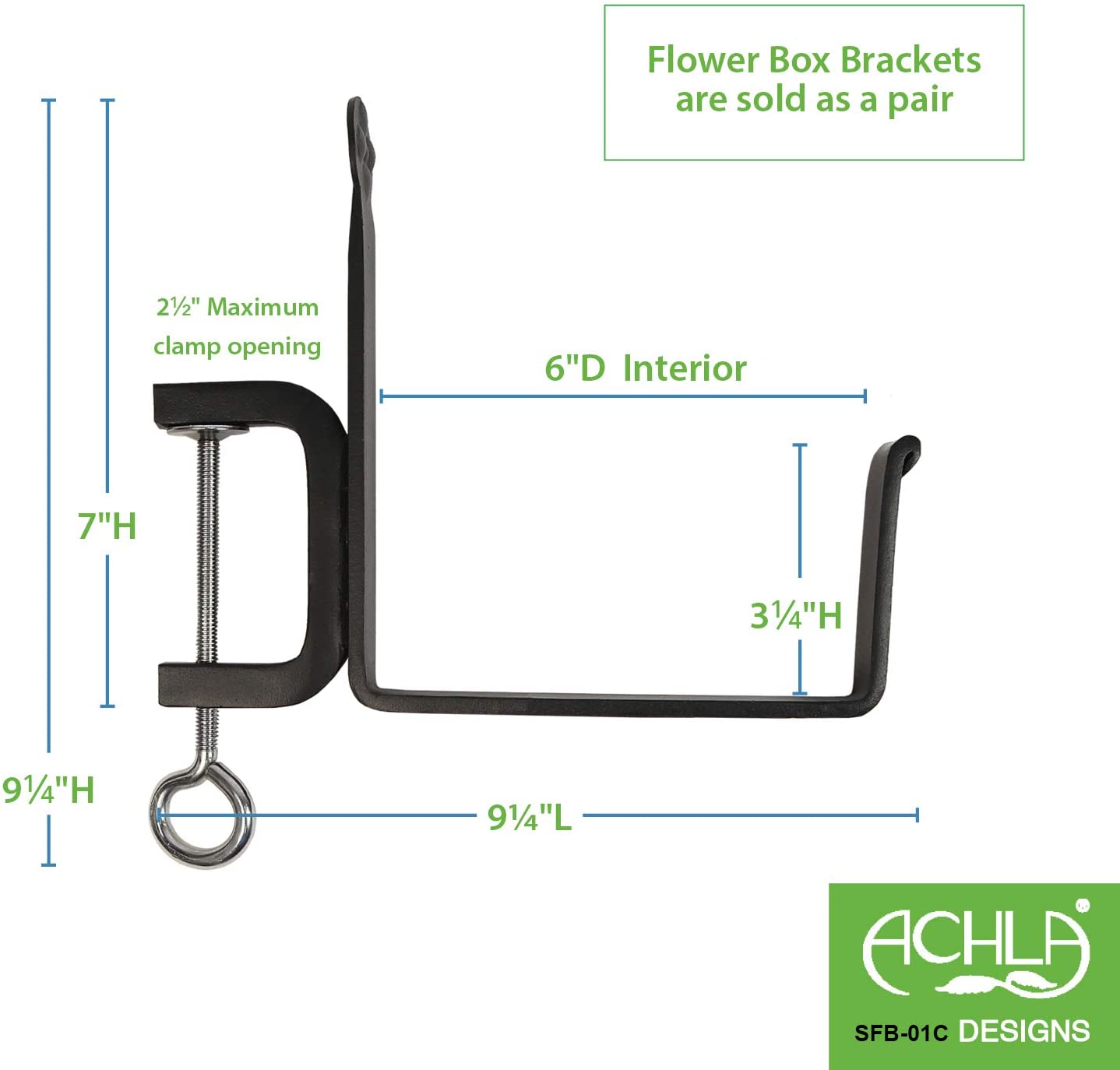 Clamp-On Flower Box, 6 Inch Deck Bracket, Black