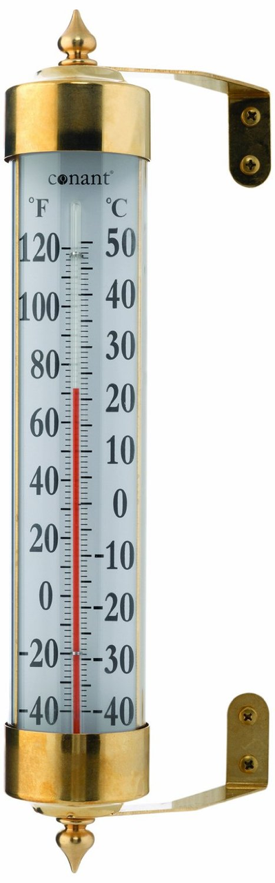 Standing 12.25” tall this easy-to-read window thermometer displays temperature in both Fahrenheit and Celsius using half-inch numerals that are double the size of those on most thermometers of its kind. The tiny column of red fluid is made clearly visible by the magnifying shape of the glass tube.