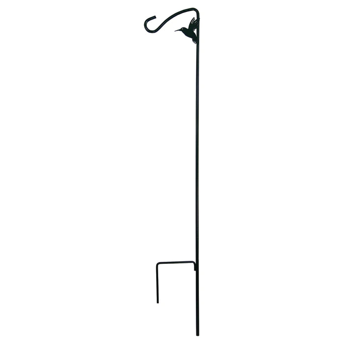 Hang your hummingbird feeder within easy viewing and near your flowers with the More Birds 42 in. Hummingbird Hook! Constructed of solid steel with a black powder-coated weather-resistant finish, this durable hook is easy to install in your yard or garden and features a built-in stabilizer leg. A beautiful hummingbird motif accents the hook’s elegant curvature, signaling to all that hummingbirds are welcome here!