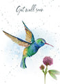 Full size card measuring 5×7″ is printed in Canada with full colour on the interior & exterior. Each card includes a pale green envelope and wrapped in cellophane. INSIDE: Wishing you a speedy recovery!