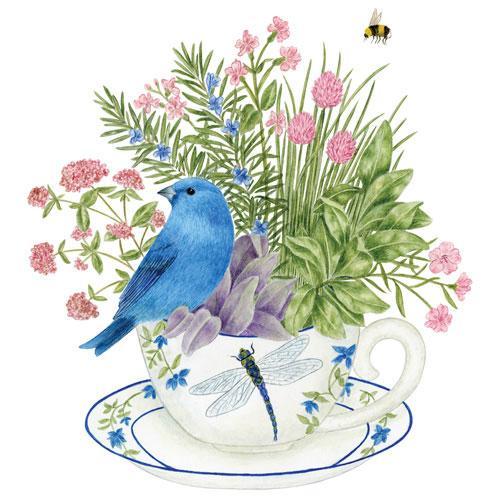 Indigo Bunting & Teacup Flour Sack Towels, Set of 2