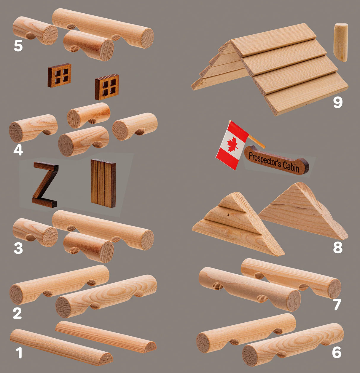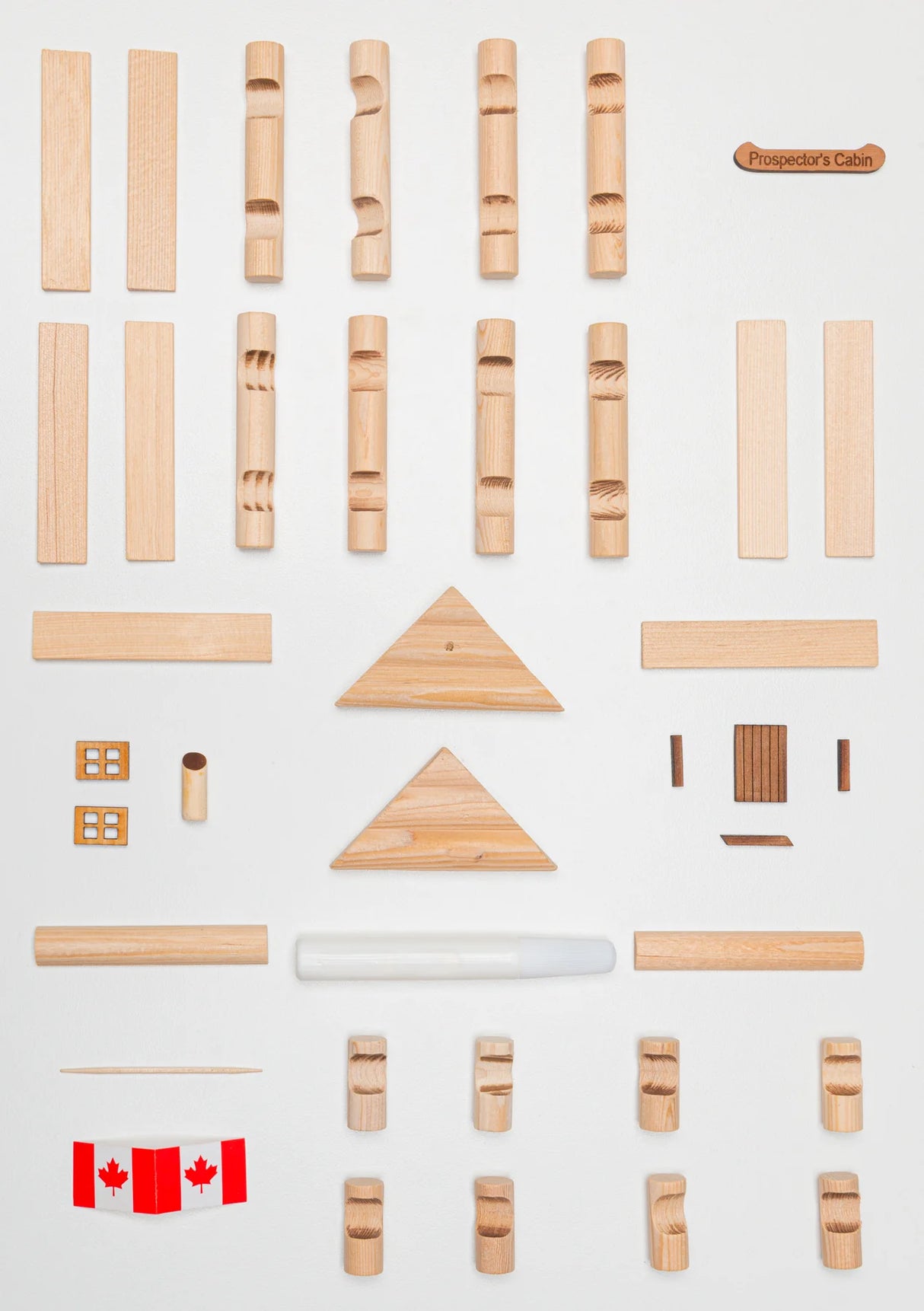 You'll want to pan for gold with this authentic Prospector's Cabin reminiscent of the gold rush days. The Prospector's Cabin comes with a detailed door, wooden framed windows, chimney, flag and a laser engraved sign.  Choose one of the standard signs like “Prospector’s Cabin" or have your Log Cabin personalized with your own engraving using up to 24 characters.  Like all of our models it also includes non-toxic white glue for safe and convenient assembly.  The Prospector’s Cabin makes an excellent gift for Log Cabin Lovers and a fantastic addition to the Log Cabin village.  This cabin is an easy build for both young and old prospectors.  Collect them all and be transported back in time as you build your cabin using the same authentic log construction methods as the early settler’s.