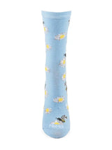Bees: they're great for the planet, and even better for your socks. Our Daisy Bees Bamboo Crew Socks feature a print of sweet, cute little bumblebees visiting daisies on a dreamy light blue background, reminiscent of the daytime sky. This design is a breath of fresh air for your wardrobe and your feet.