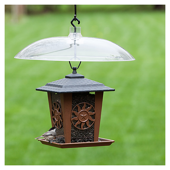 Squirrels have a way of ransacking a bird feeder, dumping all the feed onto the ground and generally making a mess of things. If you find peace and tranquility in watching wild birds at the bird feeder--but not so much those pesky squirrels, this Transparent Squirrel Baffler from Perky-Pet can help. With its large 16-inch diameter and gently curved dome-shaped profile, there's really no getting around it: birds can enjoy eating at the feeder, and squirrels will be blocked from bothering them. Save money on seed, reduce time refilling and cleaning up, and enjoy a less stressful viewing experience with this baffler in place. It promotes a more efficient way to feed wild birds and can be used with any bird feeder.