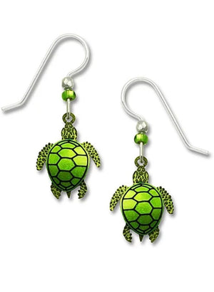 Sienna Sky Earrings - Sea Turtle with Green Shell on hypoallergenic .925 sterling silver French hook ear wires with accent beads.The earrings measure 1 inch long (total drop) by 1/2 inches wide. Color is green.