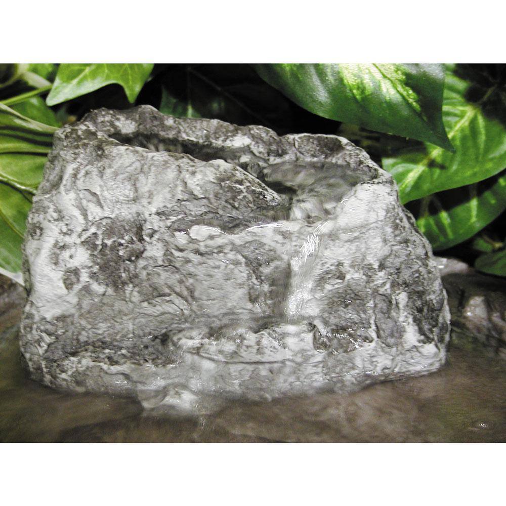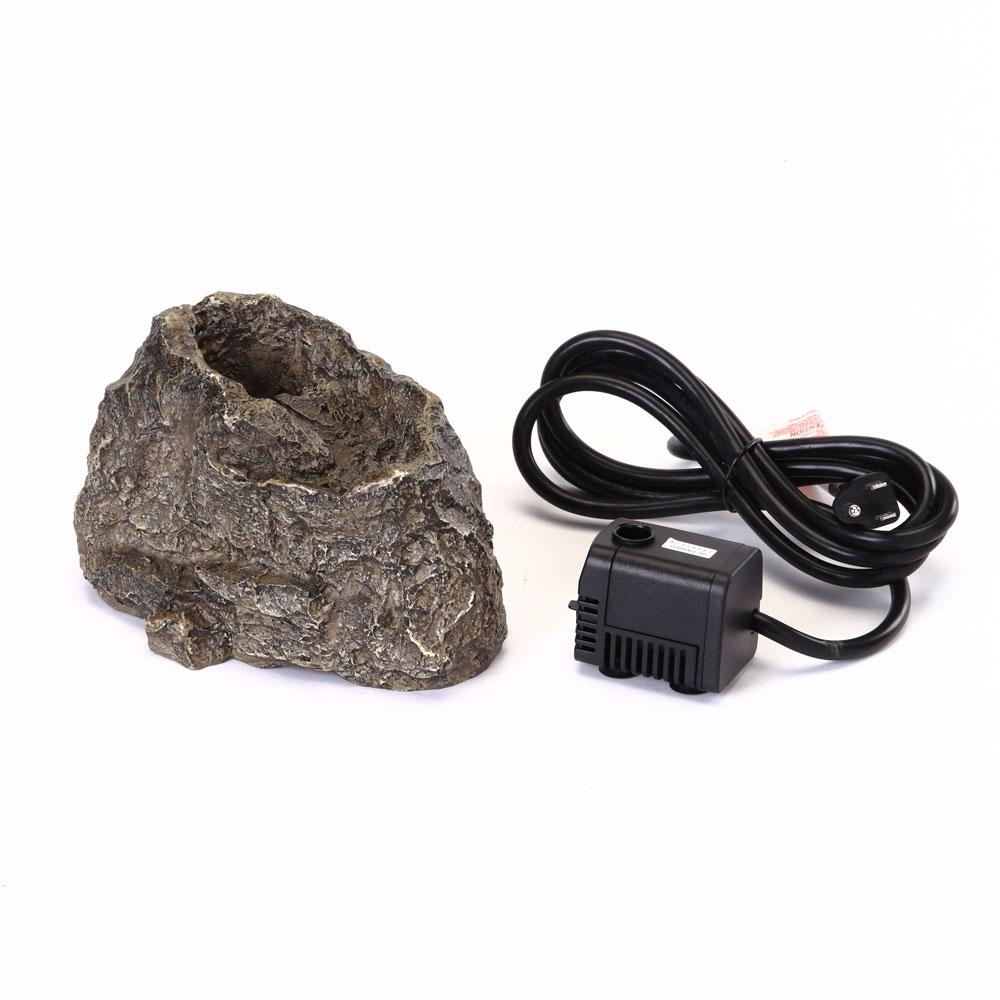 The sweet melody of birds. The peaceful rhythm of moving water. Few sounds blend so beautifully, and few can evoke such a sense of peace and calm. Prevents bird bath water from becoming stagnet. Just place this waterfall rock in your bird bath and plug in. Runs in 1-1/2" of water. Rock is made from charcoal-colored resin.