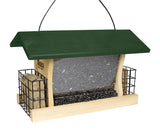 Attract more birds at once by feeding seed and suet on the same feeder. 4-sided feeding allows for more bird watching enjoyment. Sturdy pine construction. Has a large roof and mesh tray to help keep the seed dry and fresh.